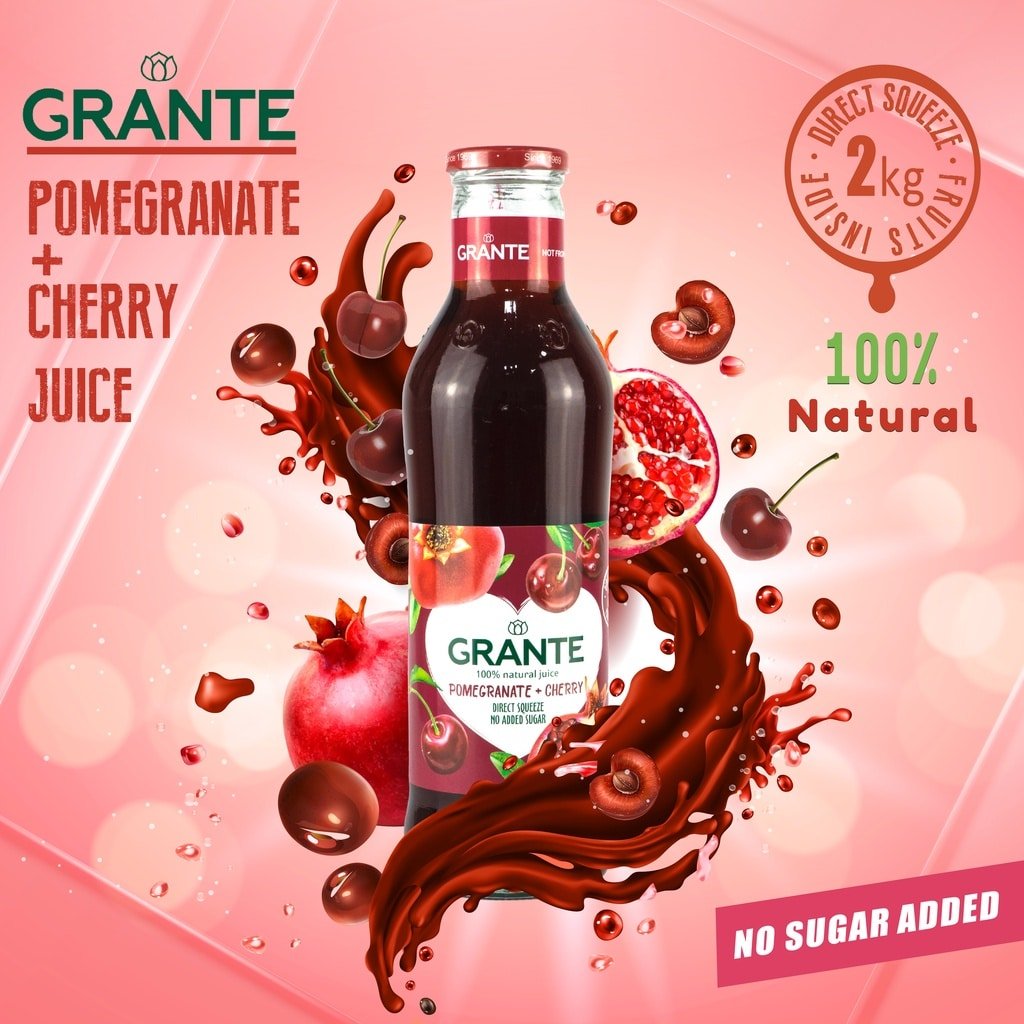 GRANTE 100% Natural Pomegranate + Cherry JUICE 750ML